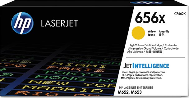 Тонер-картридж HP LaserJet 656X (CF462X) желтого цвета для HP СLJ Enterprice M652/M653 с ресурсом на 22000 отпечатков.