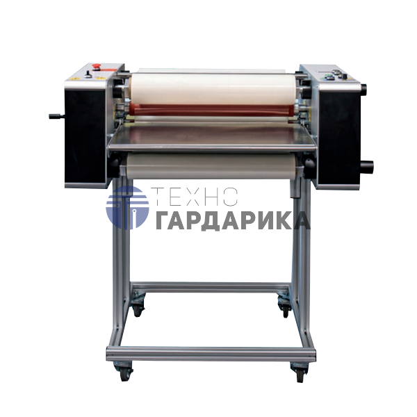 Верхний ролик нагревается до 70 °C, гарантируя быстрый прогрев пленки и стабильный результат. Аппарат оснащен прочной металлической рамой и электроприводом с питанием 230 В, 50–60 Гц, что обеспечивает тихий ход и невысокое энергопотребление при мощности в 230 Вт.