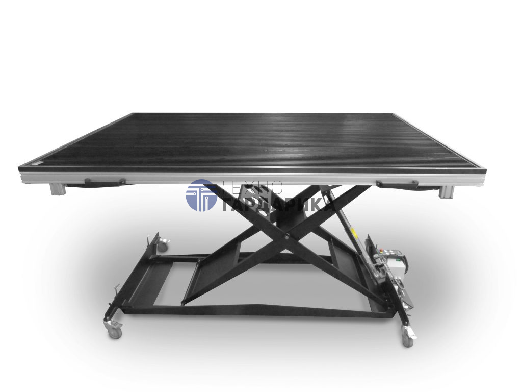 Стол оснащен электромеханическим приводом высоты с диапазоном от 35 до 130 см. Система скоростной синхронизации моторов обеспечивает плавный, бесшумный и равномерный подъем/опускание поверхности. Погрешность регулировки не превышает миллиметра, что важно при многократных настройках в рамках одного производственного цикла.