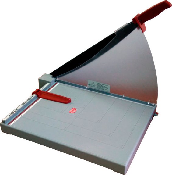 Устройство поддерживает работу с бумажными листами форматов от А6 до А3. Встроенная линейка и цифровой указатель гарантируют точность измерения положения ножа. Механизм компенсации износа автоматически подстраивает положение лезвия в процессе работы, сохраняя одинаковый качественный рез на всём протяжении срока службы ножа.