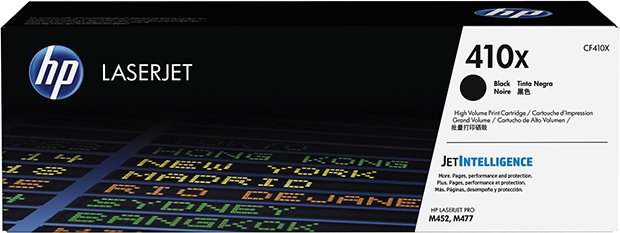 Тонер-картридж HP 410X (CF410X) черного цвета для HP CLJ M477/M452/M377dw с ресурсом на 6500 отпечатков.