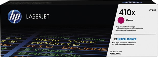 Тонер-картридж HP 413X (CF413X) пурпурного цвета для HP CLJ M477/M452/M377dw с ресурсом на 6500 отпечатков.