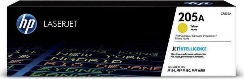 Тонер-картридж HP 205A (CF532A) желтого цвета для HP CLJ Pro MFP M180/181 с ресурсом на 900 отпечатков.