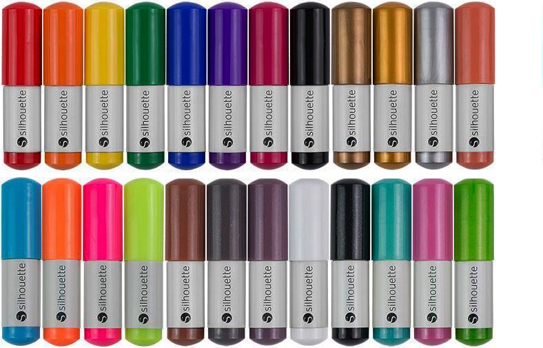 Фломастеры легко устанавливаются в стандартный держатель Silhouette, не требуют дополнительных настроек. Специальная система контроля подачи чернил предотвращает подтекания и засыхание наконечника, даже если вы ненадолго оставили ручку без колпачка. Все чернила нетоксичны и водоотталкивающие — ваши изделия сохранят яркость и долговечность.