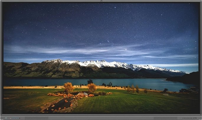Диагональ экрана составляет 75 дюймов при сверхчетком разрешении 38402160 пикселей. Яркость панели достигает 400 кд/м, а коэффициент контрастности – 4000:1. Встроенный накопитель на 64 ГБ обеспечивает хранение презентаций и мультимедийных файлов прямо на устройстве.