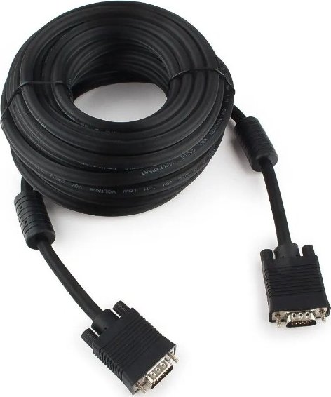 Кабель VGA Premium Cablexpert CC-PPVGA-10M-B, 15M/15M, черный, тройной экран, феррит.кольца, пакет Длина кабеля 10 метров.