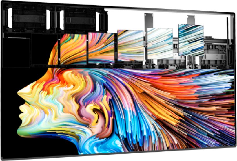 Корпус выполнен из легкого и прочного алюминия, что упрощает монтаж и транспортировку. Габариты одного экрана с рамкой составляют 3710 2108 115 мм. Модульная система позволяет собирать экраны любых размеров, а степень защиты IP40 спереди и IP21 с тыла гарантирует надежность при работе в закрытых помещениях.