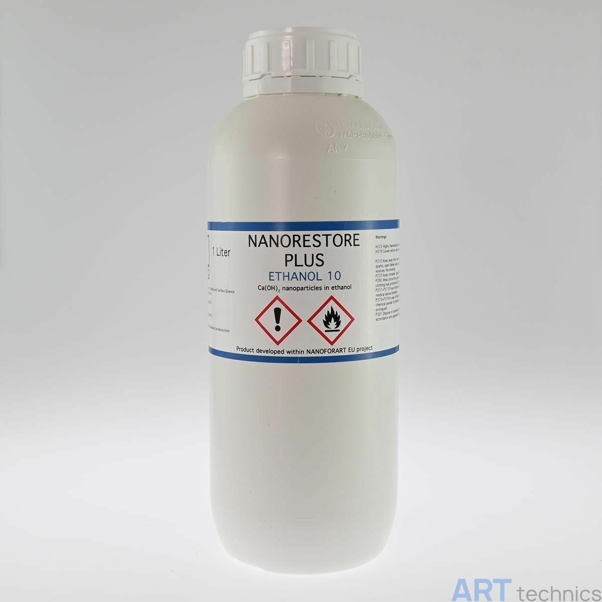 Nanorestore Plus® Ethanol 10 представляет собой дисперсию наночастиц гидроксида кальция в абсолютном этаноле с концентрацией 10 г/л. Продукт поставляется в виде лёгкого белого порошка, напоминающего нанолайм, что обеспечивает удобство хранения и дозирования.