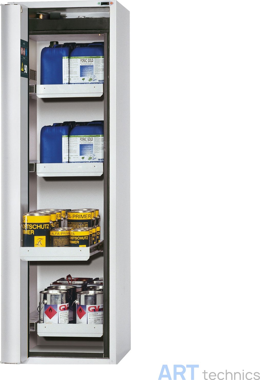 Характеристики Оснащение мастерских Asecos Шкаф Phoenix со складывающимися створками, 1-х-створчатый, 4 выдвижных ящика, серого цвета