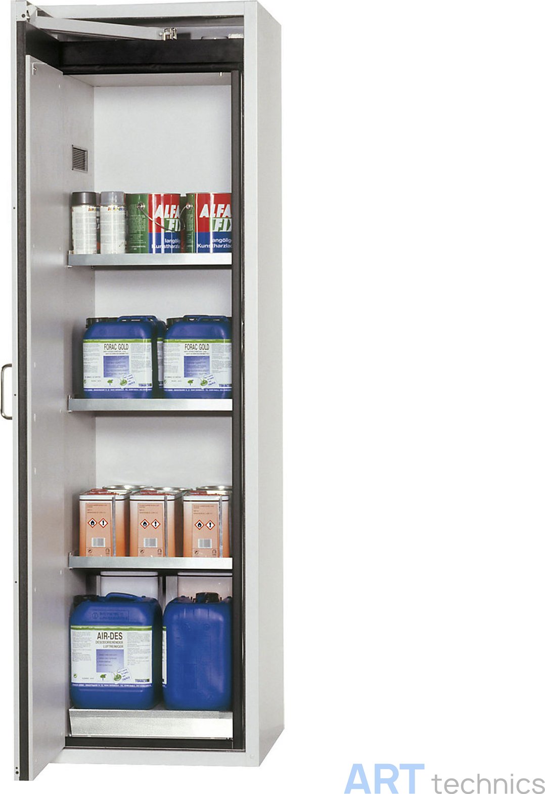 Характеристики Оснащение мастерских Asecos Шкаф для безопасного хранения материалов, 1-створчатый, ширина 60 см, серого цвета